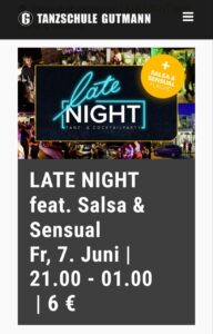 Juni 7, 2024 21:00 Late Night Heute Abend wieder Late Night feat. Salsa & Sensual in der Jack’n’Jill Lounge des Ballhauses!