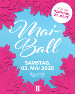 Am Samstag, dem 3. Mai 2025, laden wir euch zum alljährlichen Mai-Ball im Ballhaus Freiburg ein. Freut euch auf eine unvergessliche Tanznacht mit tollen Showacts, spannenden Workshops und einem abwechslungsreichen Musikprogramm.