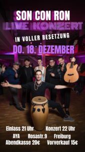 Son con Ron Konzert in voller Besetzung am 18. Dezember bei AYA in der Latin Dance Academy Freiburg