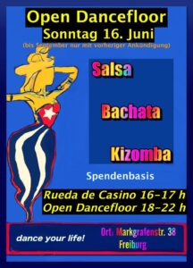 Heute ausnahmsweise schon von 16 bis 17 Uhr Rueda und ab 18 Uhr Open Dance Floor.