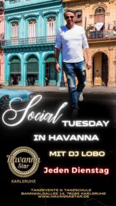 Juni 25, 2024 21:00 Social Tuesday Jeden Dienstag von 21 bis 24 Uhr „Social Tuesday“ im Havanna Star Karlsruhe mit DJ Lobo